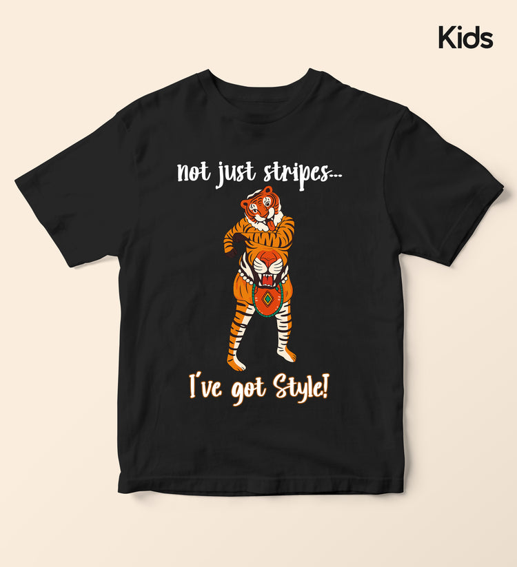 This kids’ graphic t-shirt features a playful tiger dancer illustration with a bold festive vibe, celebrating one of the most colorful traditions of Onam. Perfect for school functions, cultural events, festive wear, or simply adding a splash of tradition to everyday outfits, it’s a tee that combines fun and heritage.